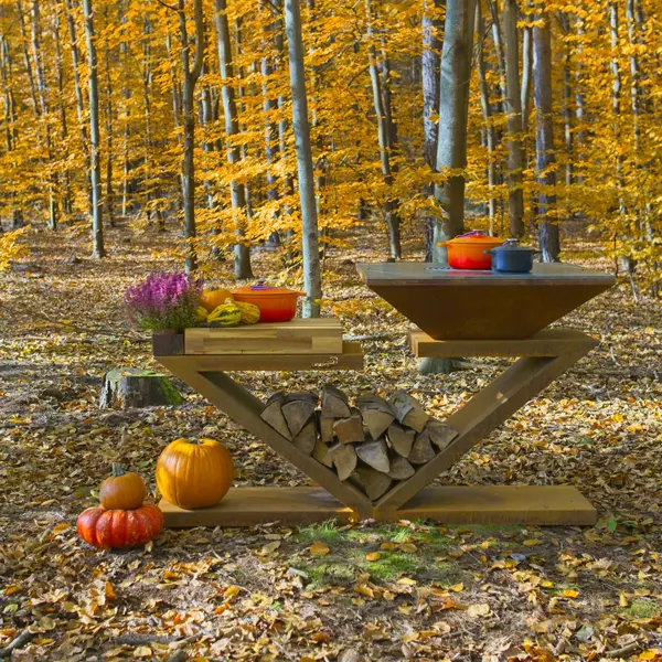 Un foyer à bois unique pour une cuisson grill, plancha et barbecue. Barbecue très polyvalent pour cuisiner à l’extérieur. Décorez votre extérieur avec cet élément de décoration moderne et luxieux.
